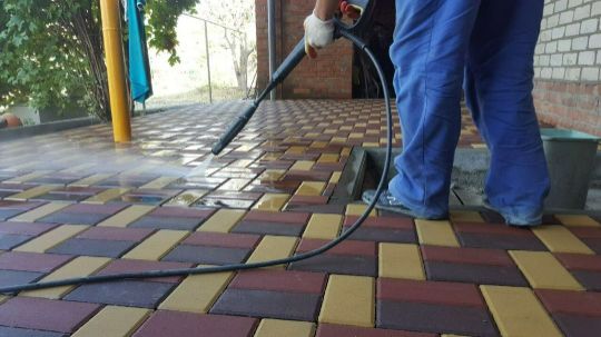 Глубокая очистка тротуарной плитки и дворовых покрытий.